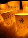 運河の水面で瞬く古い漁具をモチーフにした浮き玉キャンドル、柔らかな光がともるスノーキャンドル、オブジェなど、ボランティアの手作業によるろうそくの温かなあかりが来場者をもてなします。