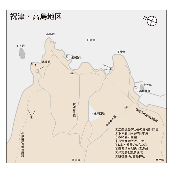 1.祝津の夜雨2.色内の晴嵐3.住吉の秋月4.竜徳寺の晩鐘