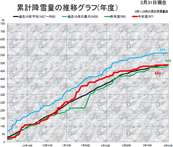 - 令和7年度の累計降雪量につきましては、以下の通りとなりました。