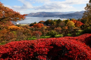 奥にある緑化植物園内からは、平磯岬、札幌方向に広がる石狩湾、さらに暑寒別岳まで山々の遠望が楽しめます。重要眺望地点になっています。