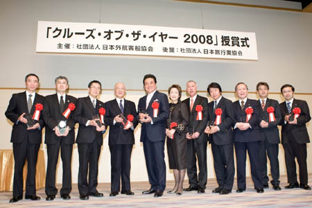 小樽港を起点港に就航している「にっぽん丸・飛んでクルーズ北海道」(平成18年から毎年実施し,、平成20年は4航海)が、(社)日本外航客船協会の平成20年から主催するクルーズ・オブ・ザ・イヤーの第1回グランプリを受賞しました。表彰対象はにっぽん丸船社の商船三井客船、旅行代理店のJTB北海道、北海道クルーズ振興協議会、小樽市の4者で共同受賞です。 2月2日東京で授賞式が行われ、山田市長が出席しました。