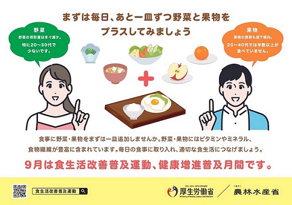 厚生労働省では、毎年9月1日から9月30日までの1か月間を「食生活改善普及運動月間」としています。