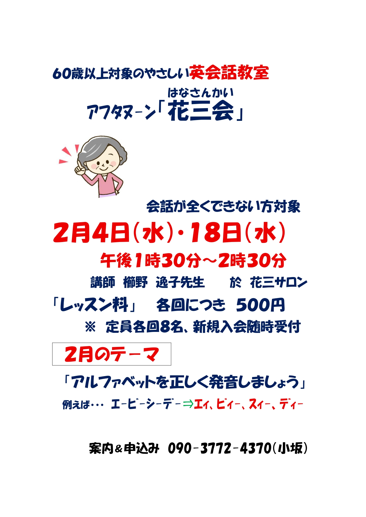 アフタヌーン英会話教室「花三会(はなさんかい)」(花園東三丁目連合会)