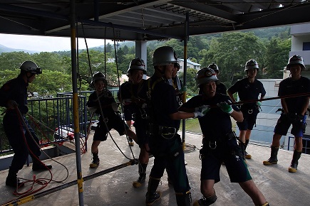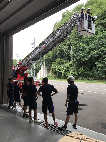 参加した生徒の皆さんは、暑い中、一生懸命に訓練を体験していました。