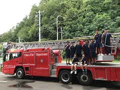 小樽市消防本部の仕事を知ってもらうため、はしご自動車搭乗体験、防火衣着装体験、放水訓練、ホース延長訓練、救助訓練などを実施しました。