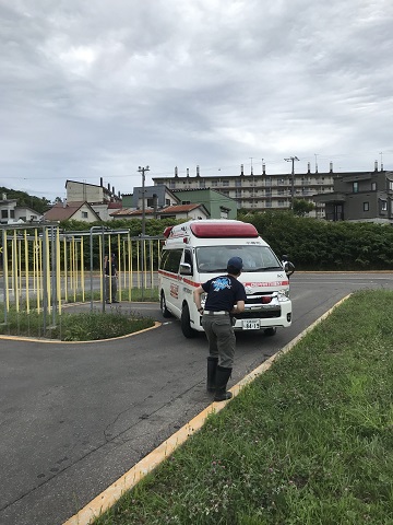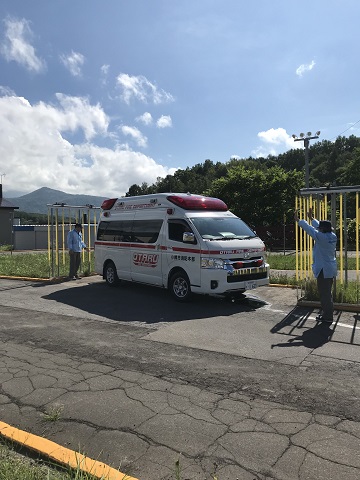 この訓練は、機関員(消防車・救急車の運転手)の運転技能の向上と隊員による適切な車両誘導要領の習熟を目的に実施し、交通事故を防ぐための取組です。