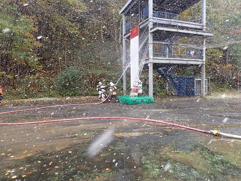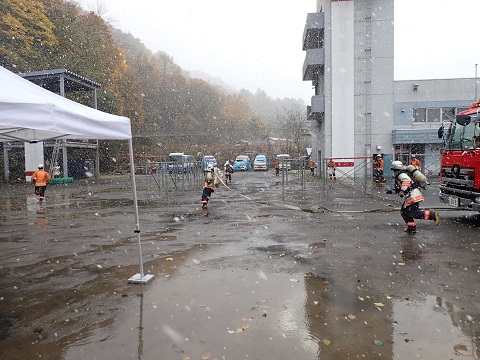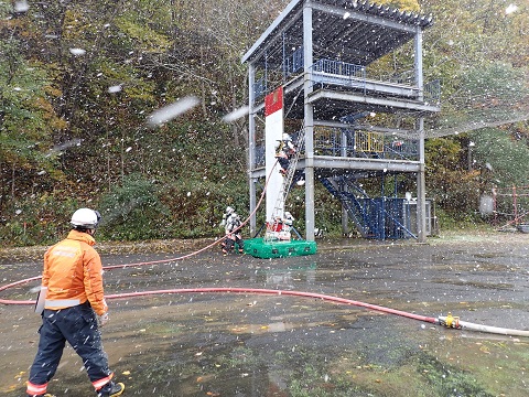 この訓練は、日頃の訓練成果を消防長が確認するとともに、警防技術を向上させることを目的としており、二日間で、救助隊2隊、消防隊6隊の合計8隊が訓練を実施しました。