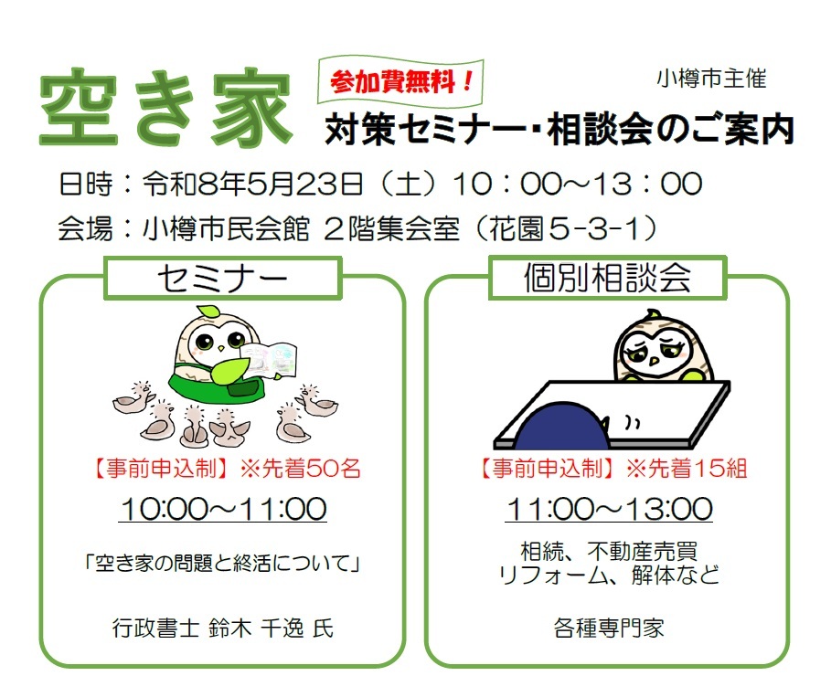 【空き家対策セミナー&相談会開催のお知らせ】※セミナーのみ受付中