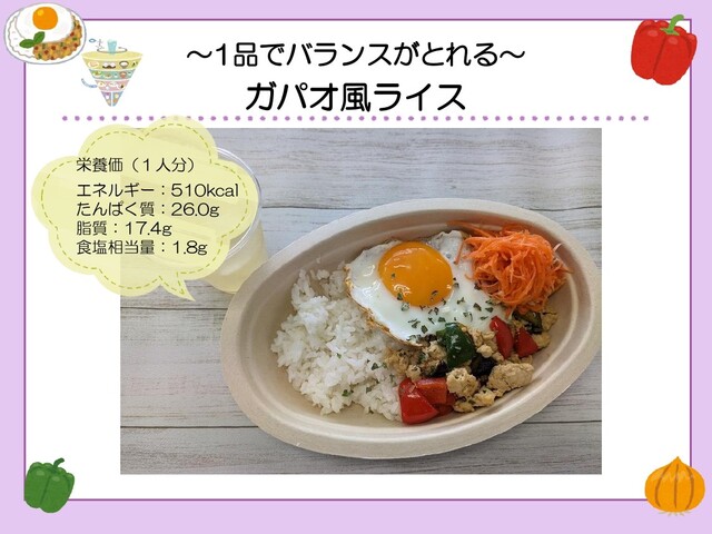 ここでは、主食・主菜・副菜の食材を組み合わせることで、1品でバランスがとれるレシピをご紹介します。